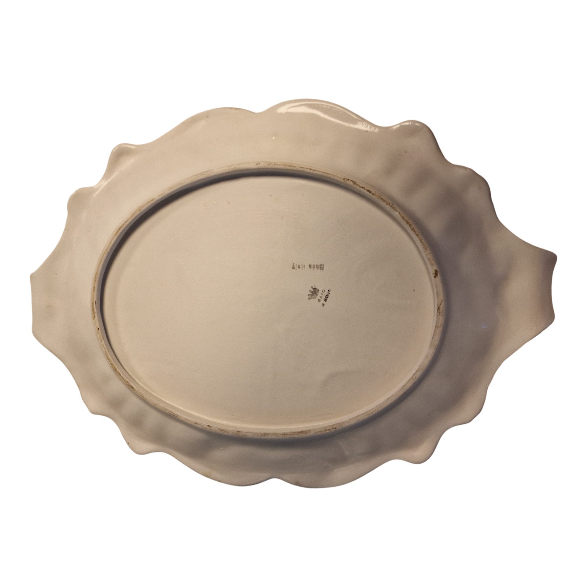 Magnífica terrina em porcelana Capodimonte, acompanhada de base oval, de fabrico italiano e marcada Made in Italy.