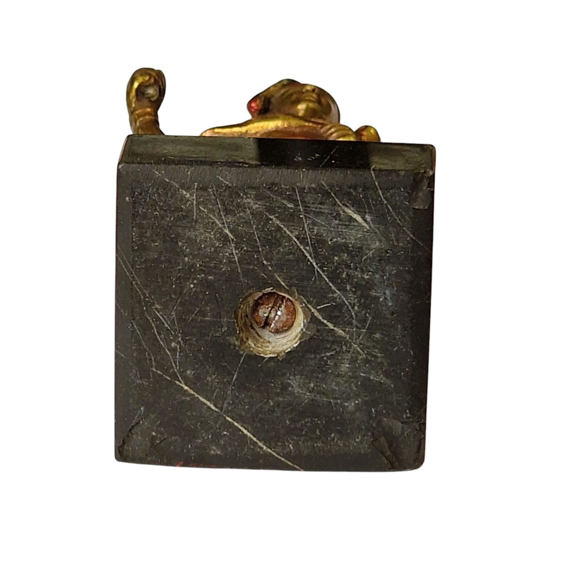 - Tipo de acabamento: Pintura policromada sobre metal com base de mármore polido