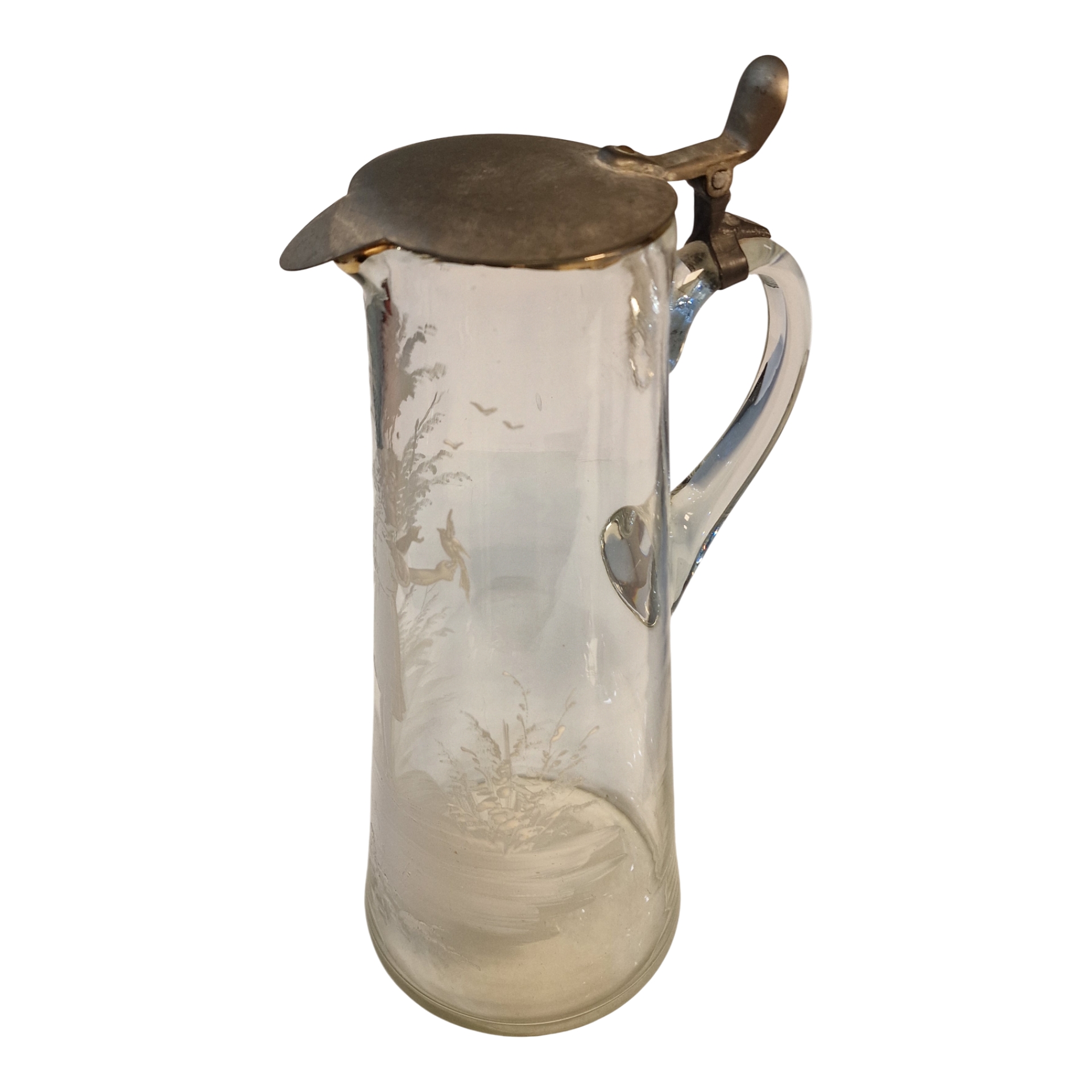 As jarras em vidro pintado a esmalte foram produzidas em grande escala na região da Boémia e Alemanha durante os séculos XIX e XX. O trabalho minucioso da pintura manual conferia singularidade a cada peça, tornando-as objetos apreciados tanto em ambientes domésticos de prestígio como em cafés europeus da época. Hoje, continuam a ser valorizadas pela sua delicadeza artística e caráter colecionável, representando um testemunho da tradição vidreira centro-europeia.