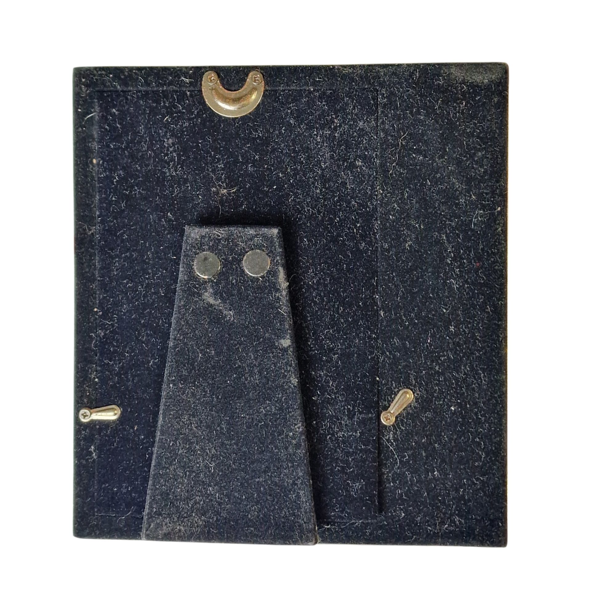 Elegante moldura de mesa, composta por estrutura em ferro ou aço com acabamento prateado e detalhe decorativo de rosa em relevo. Apresenta uma aplicação em resina com efeito de madrepérola em tom bege nacarado, conferindo-lhe um aspeto delicado e sofisticado. O suporte traseiro permite exibição em superfícies planas com inclinação estável. Esta peça destaca-se pela harmonia entre os materiais metálicos e o efeito luminoso da resina.