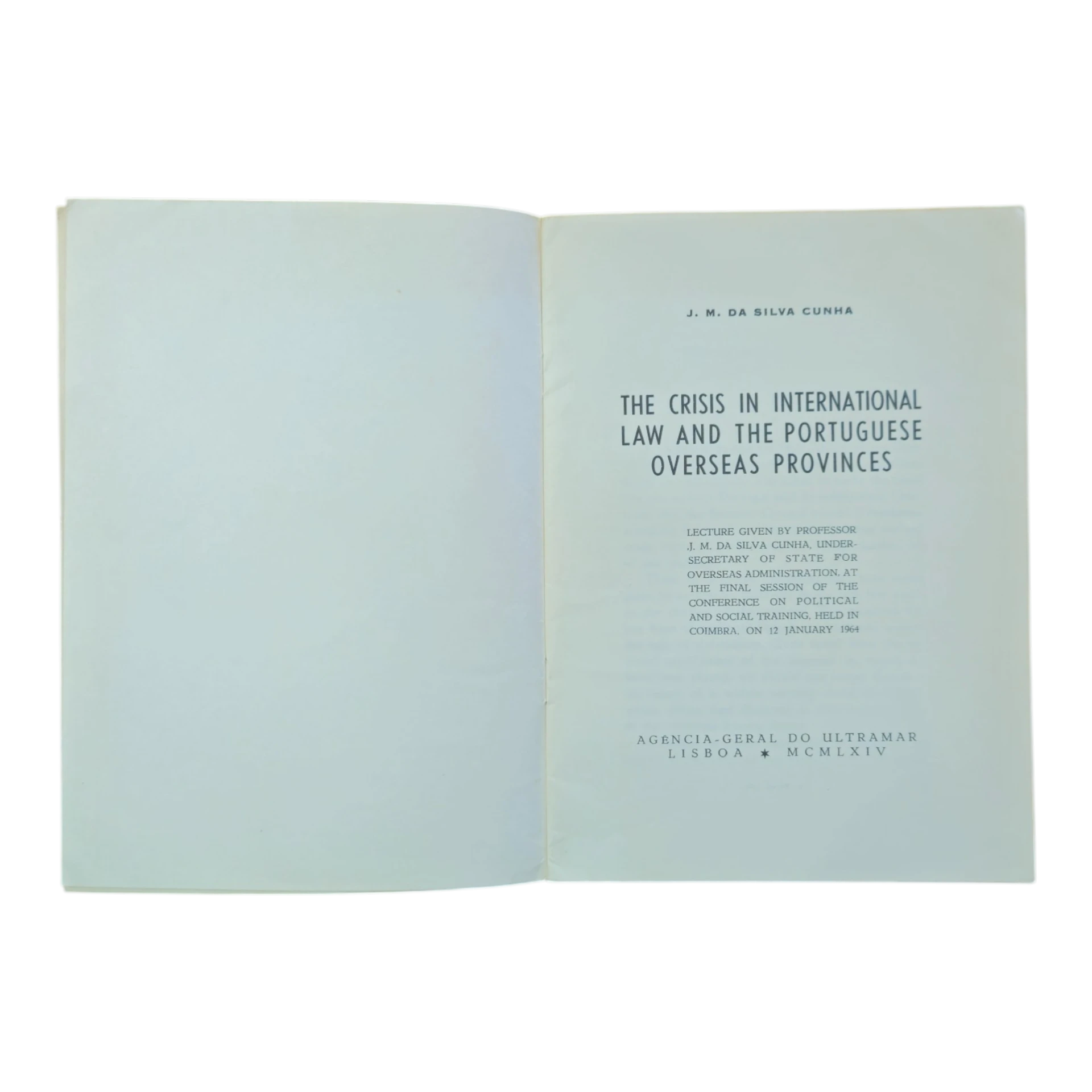 The Crisis in International Law and the Portuguese Overseas Provinces – J. M. da Silva Cunha (1964) – Agência-Geral do Ultramar