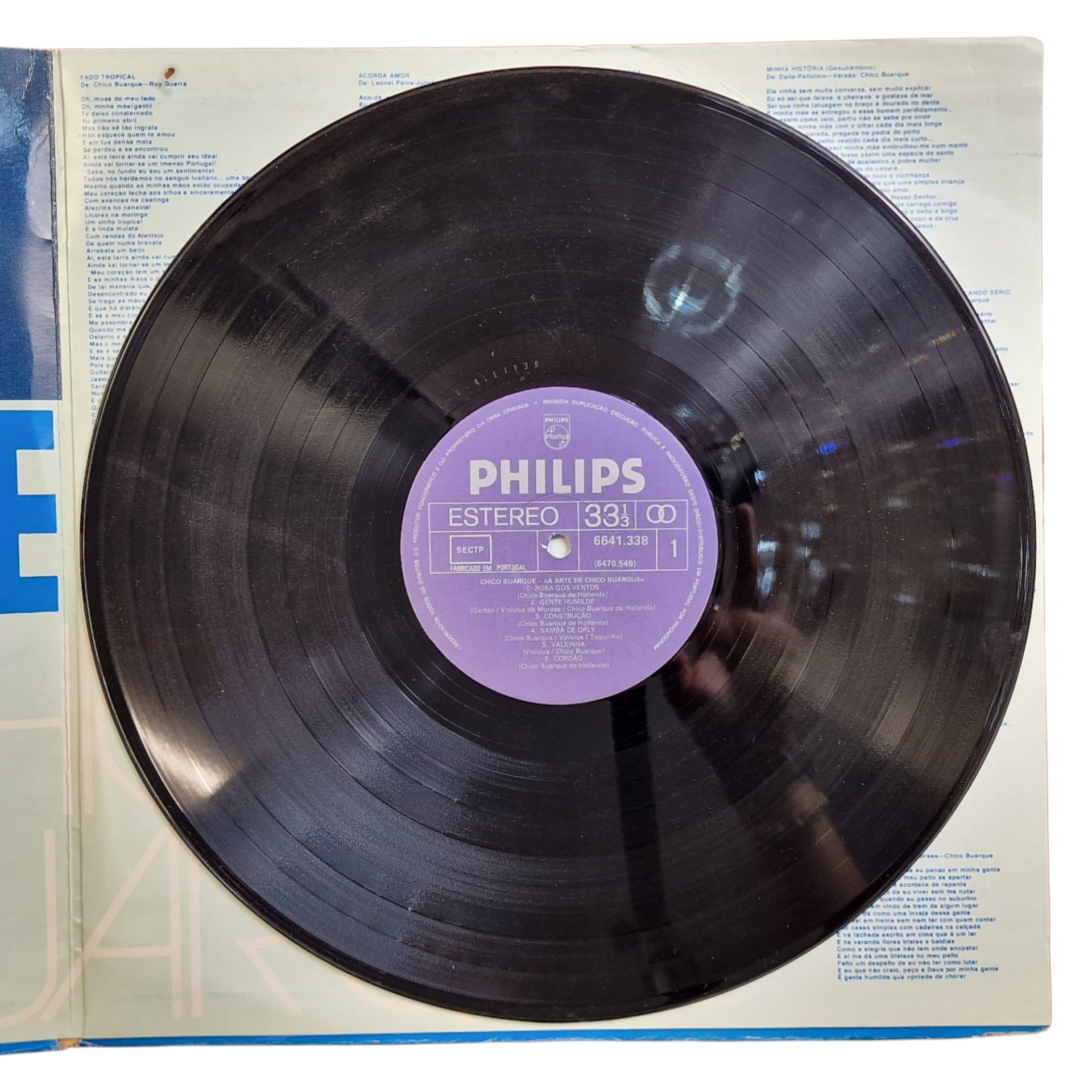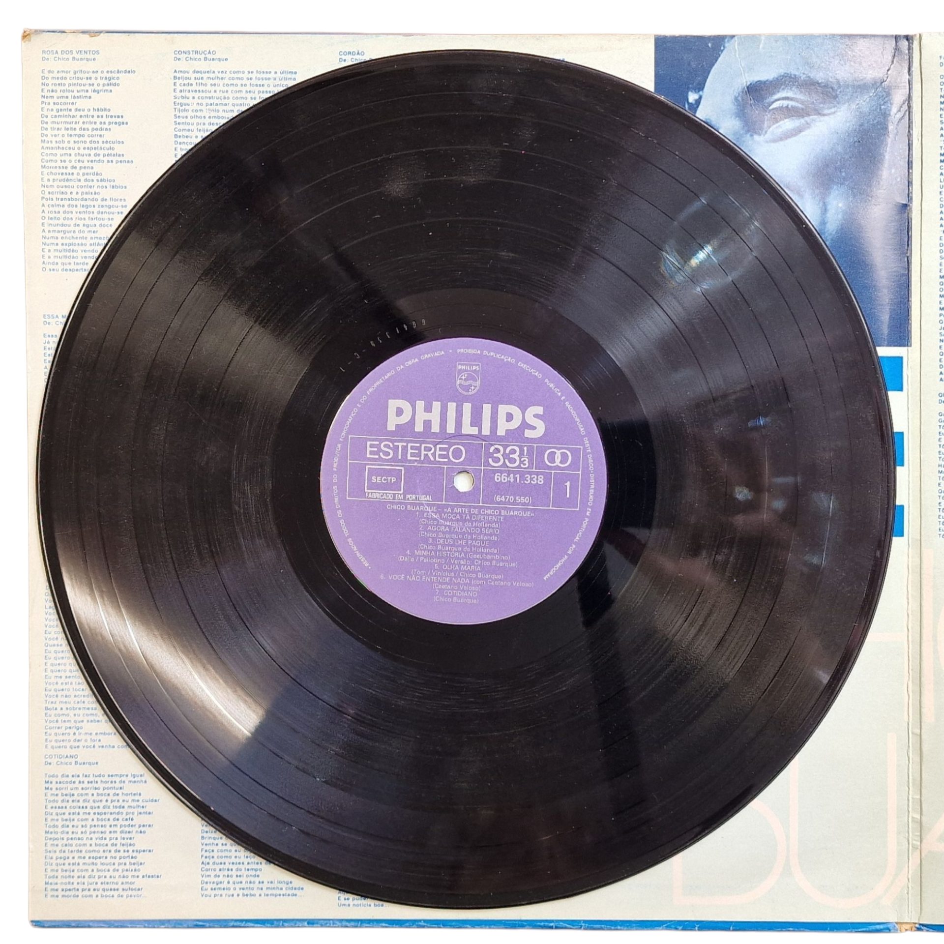 Esta edição portuguesa da série “A Arte de…” apresenta uma seleção cuidadosa da obra de Chico Buarque, com gravações extraídas de diferentes momentos da sua carreira. Os dois discos abrangem desde canções de crítica social e política, como “Construção” ou “Deus Lhe Pague”, até sambas sentimentais e líricos como “Olhos nos Olhos” e “Valsinha”. A coletânea inclui também colaborações com nomes como Caetano Veloso, Tom Jobim e Edu Lobo, oferecendo uma visão abrangente da riqueza melódica e poética do autor. Lançada pela Philips e fabricada em Portugal, esta edição com o número 6641.338 é uma peça valiosa para colecionadores e admiradores da música brasileira.