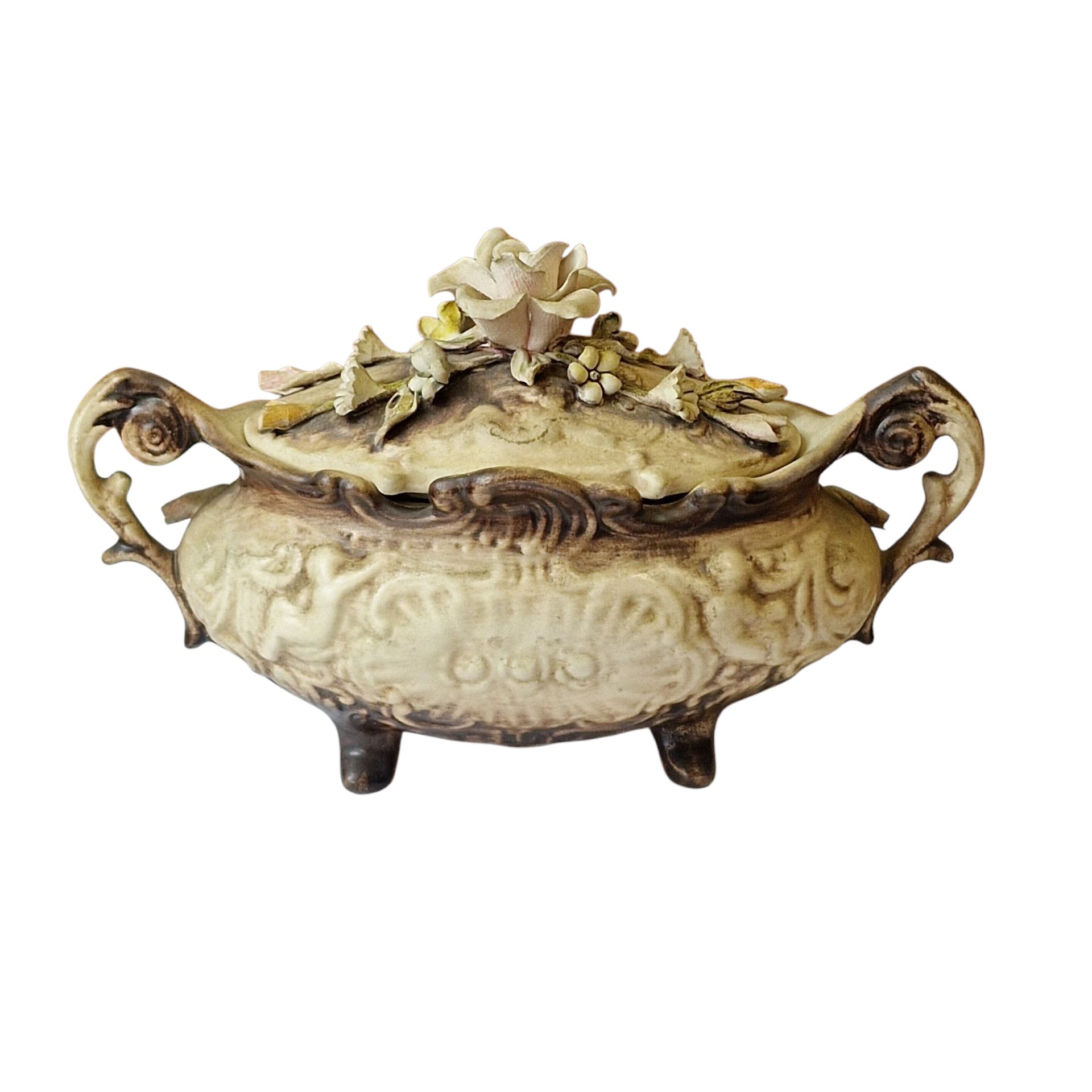 Mini Terrina Capodimonte com Flores Esculpidas – Itália