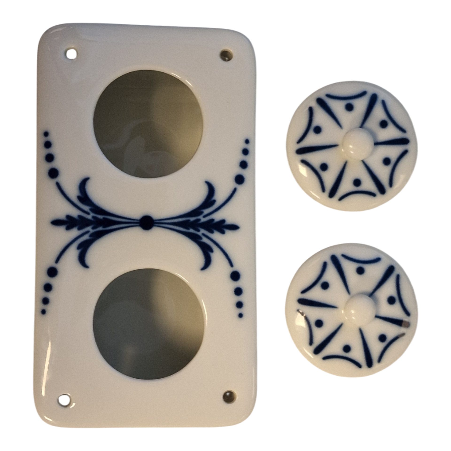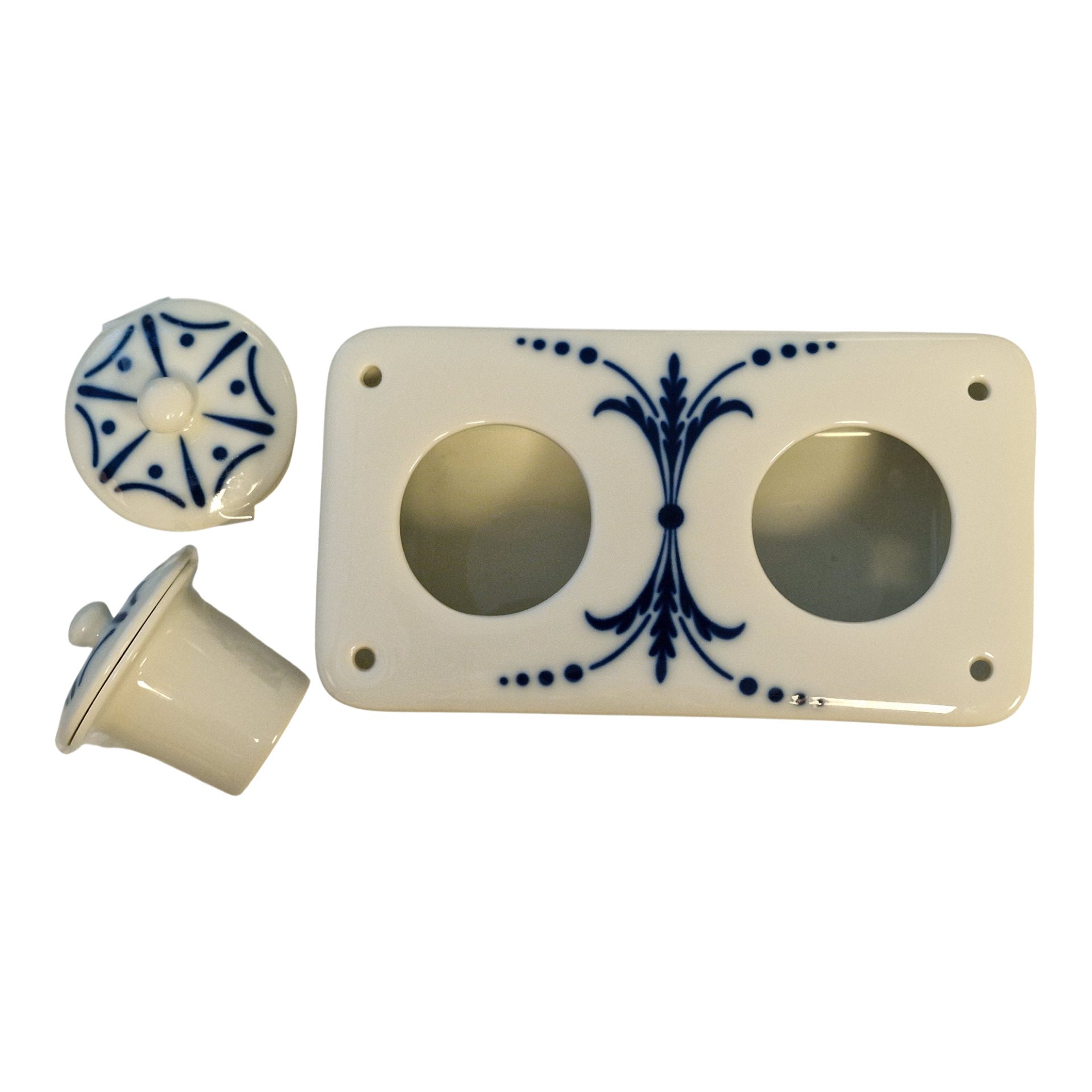 Os dois potes são removíveis, as tampas ajustam-se na perfeição, e o conjunto encontra-se em excelente estado de conservação, sem lascas, fissuras ou qualquer desgaste visível.