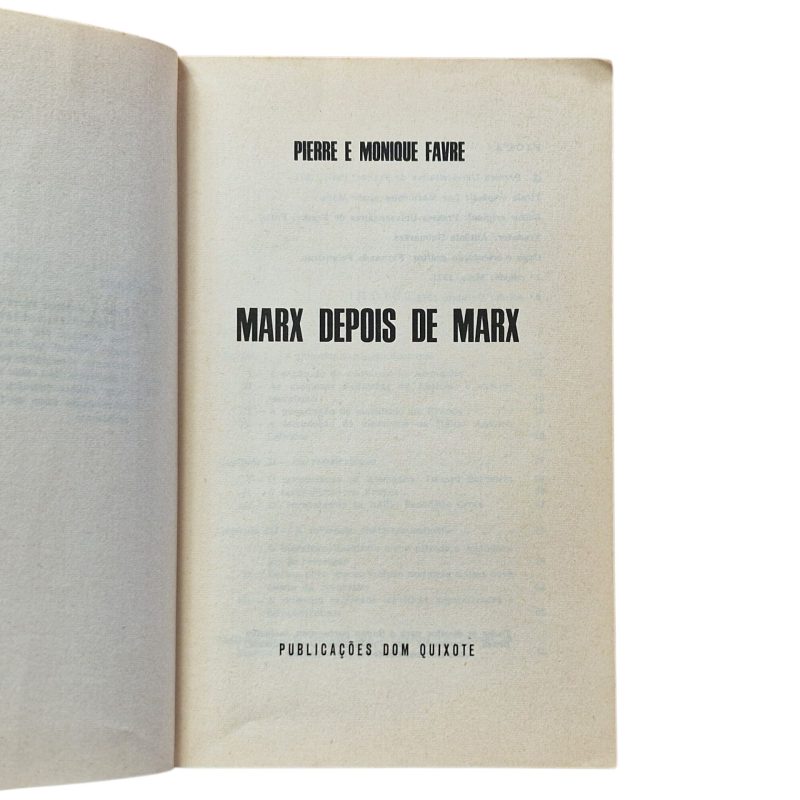 Marx Depois de Marx, da autoria de Pierre e Monique Favre, é uma obra de reflexão filosófico-política que examina o impacto das ideias de Karl Marx após a sua morte, sobretudo no século XX, em contextos teóricos e práticos.